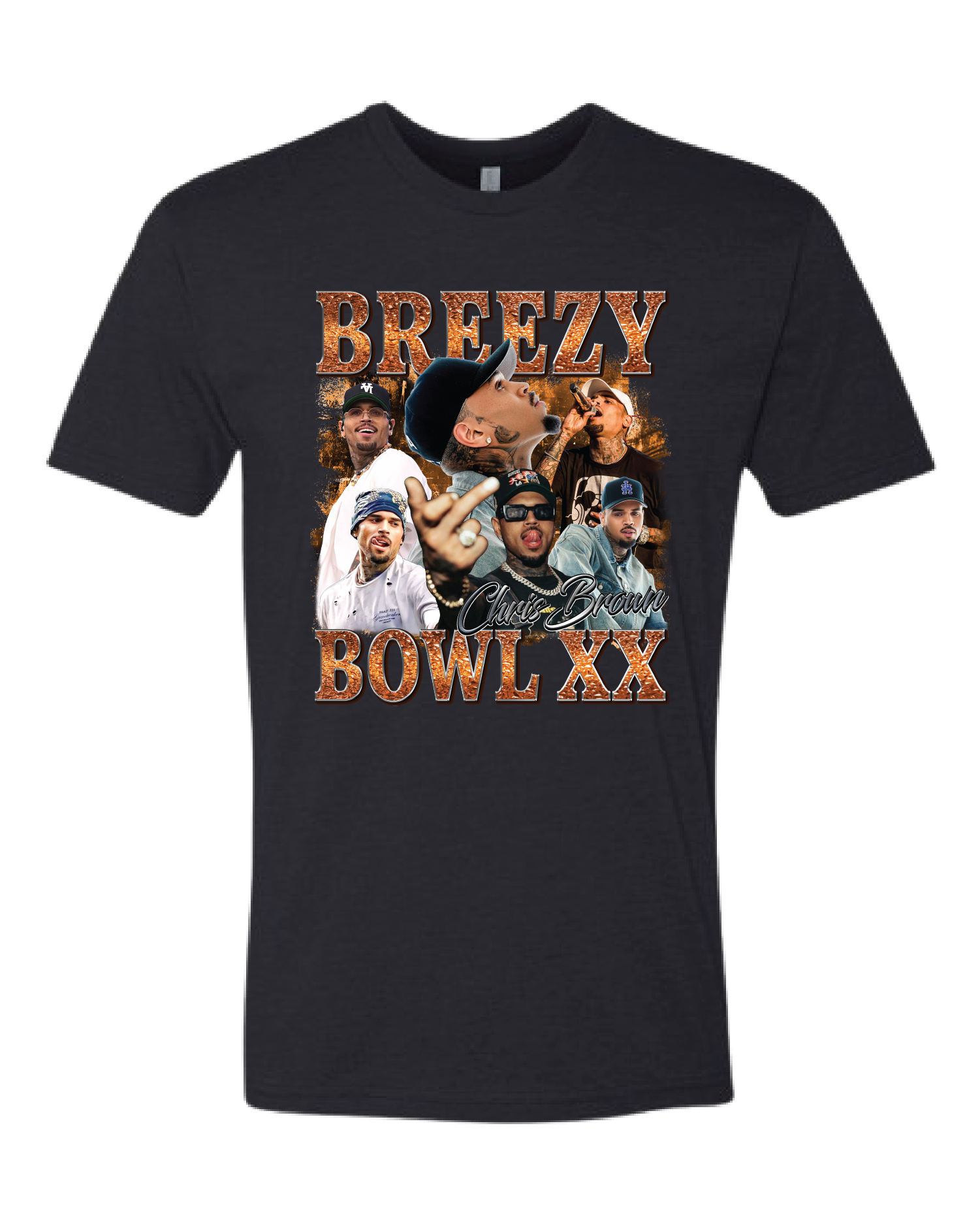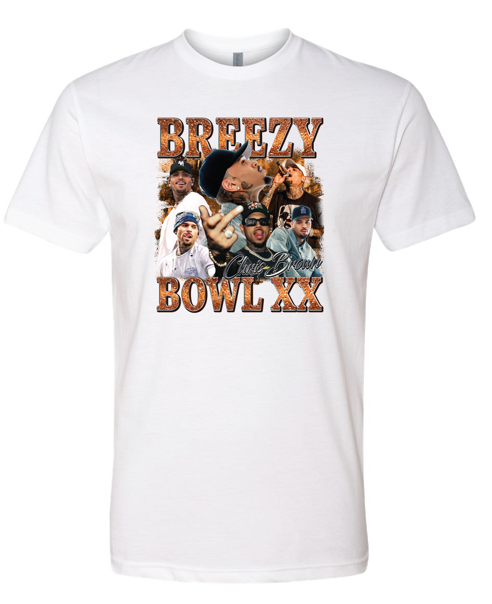 Show love to every era of Chris Brown with this multi-collage Breezy Bowl XX tee. Packed with dynamic images of Breezy over the years, this design captures his growth, versatility, and unforgettable vibe. Perfect for fans who want a statement piece that speaks volumes.