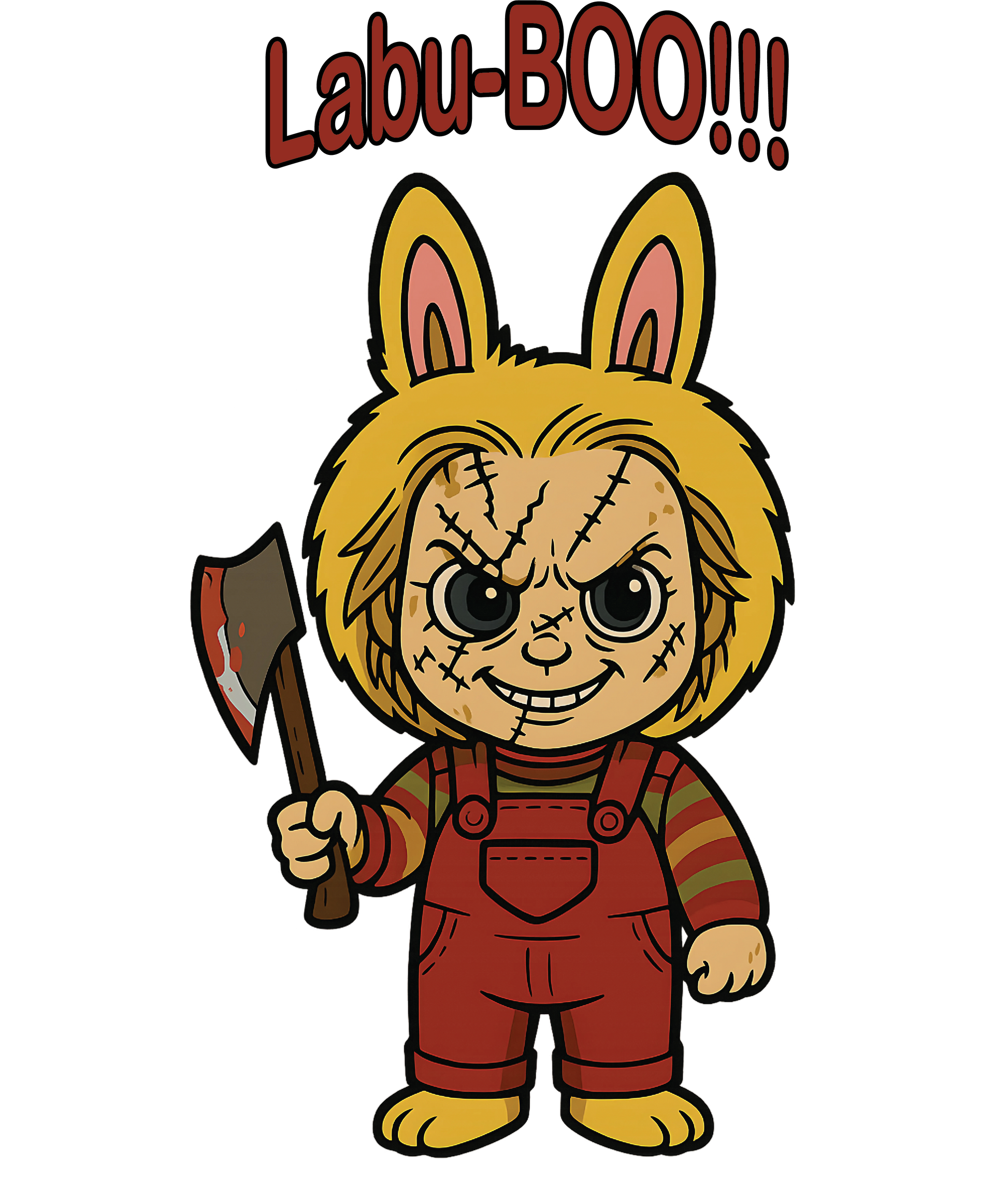 🎨 Design: “Labu-BOO!!!” Chucky graphic printed with vivid color detail