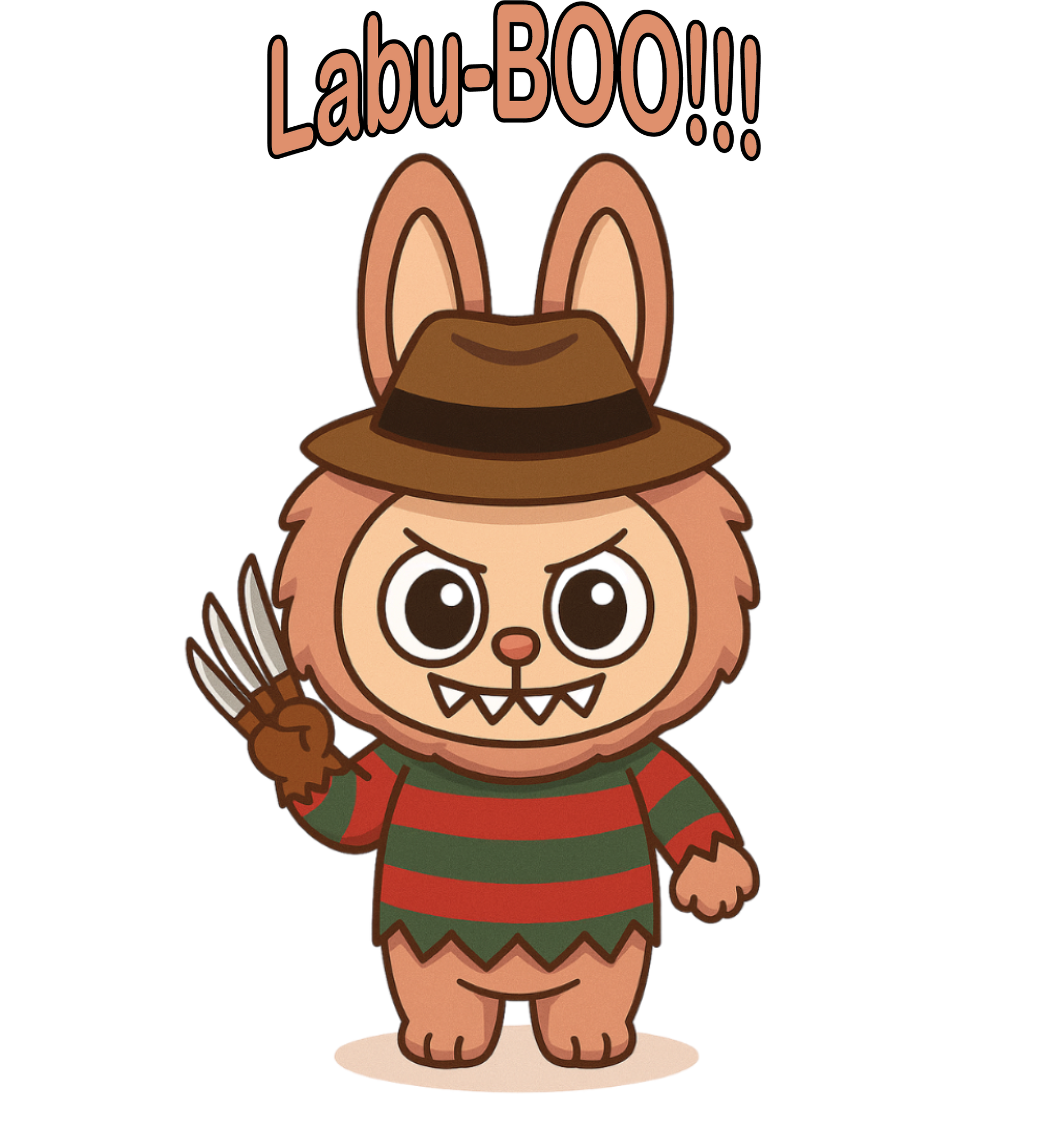 Add some frightful fun to your Halloween wardrobe with the Labu-BOO!!! design β where cute meets creepy! This mischievous bunny brings the spooky vibes in a striped sweater and fedora, complete with a playful snarl and clawed glove. Perfect for anyone who loves a mix of adorable and eerie.