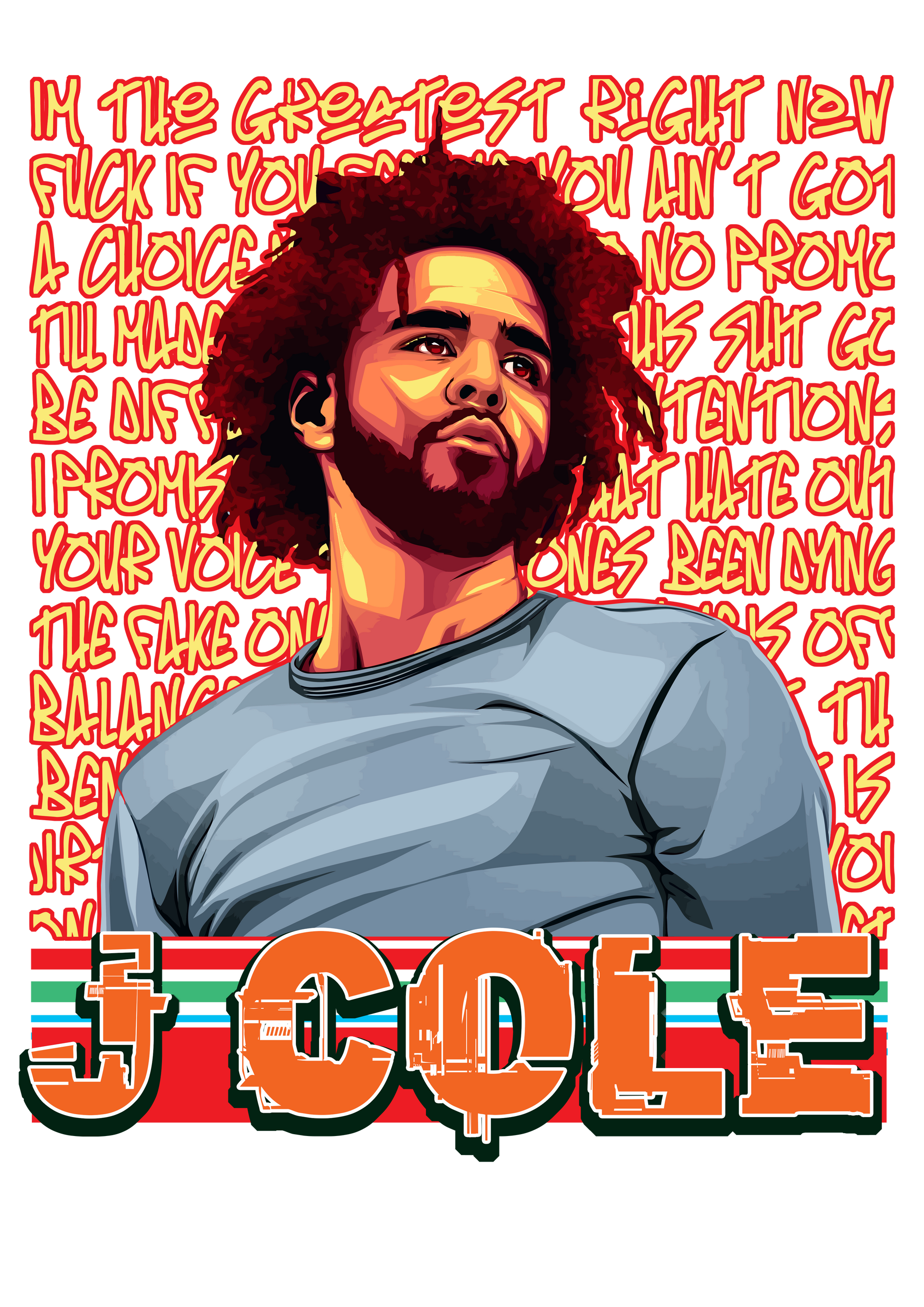 - Features a captivating graphic of J. Cole, perfect for showcasing your love for hip-hop culture