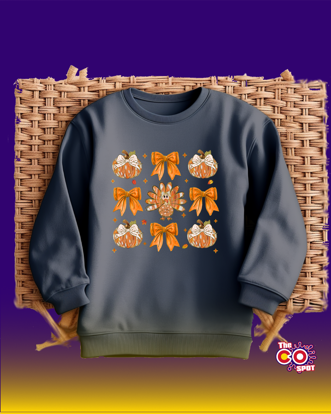 Beautiful Pumpkin Turkey Coquette Sweatshirt to cozy up this autumn season, available in black, white, beige, orange or light gray!